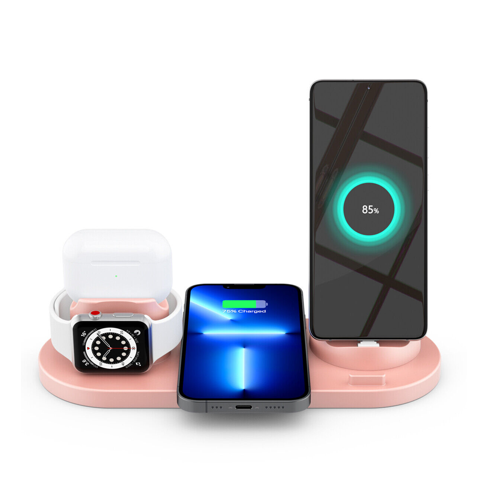 قاعده شاحن متعدد الاستخدامات هو الحل الأمثل لشحن جميع أجهزتك في مكان واحد. مع قدرة على شحن آيفون، أندرويد، Type-C، الساعة، والأيربودز، يتيح لك هذا الشاحن لاسلكي شحن عدة أجهزة في وقت واحد بسرعة وكفاءة. تصميمه الذكي يضمن لك راحة الاستخدام دون الحاجة إلى تعدد الكابلات أو الأجهزة.